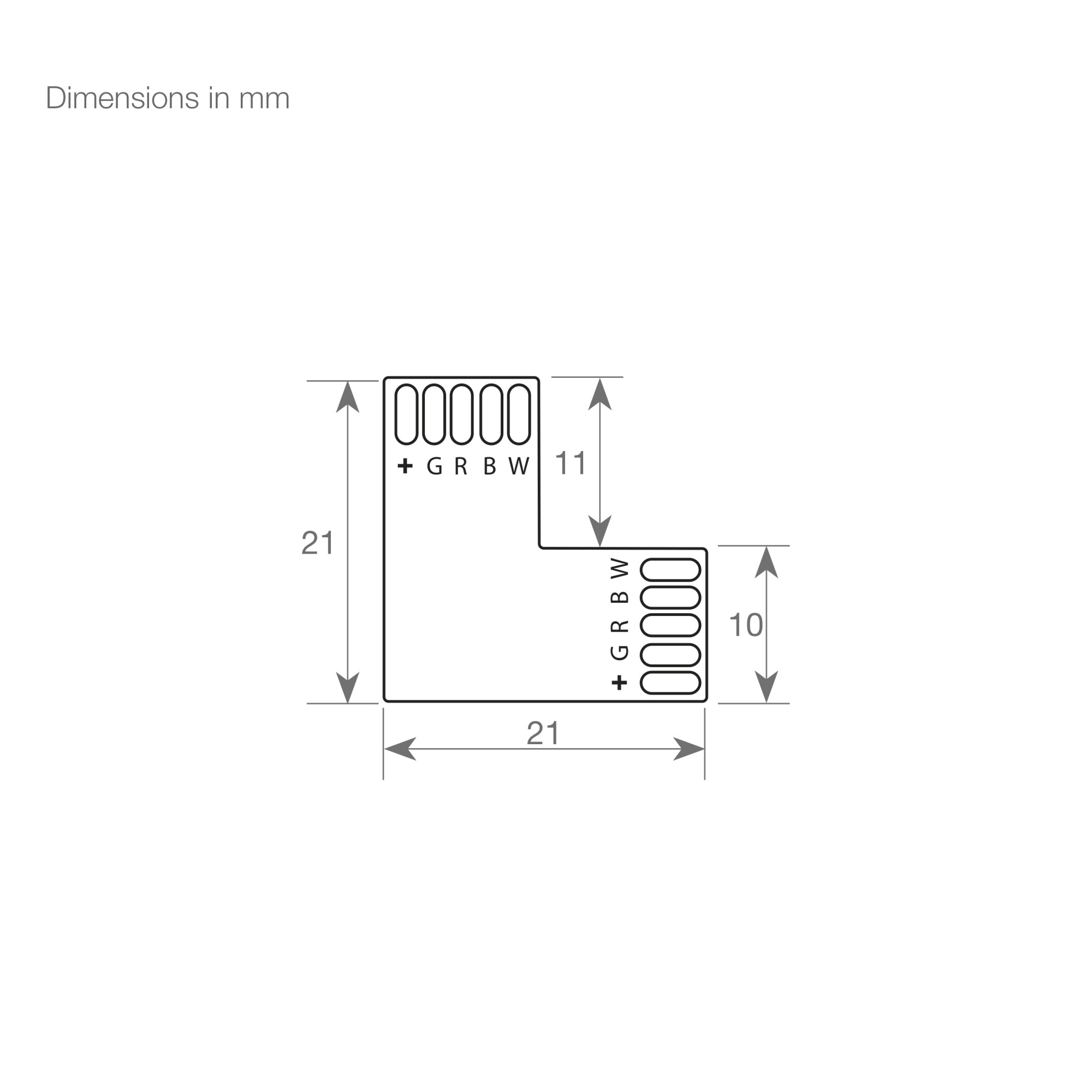 | 42.221 | L-SHAPED PCB CONNECTOR FOR RGBW 10MM FLEXIBLE STRIP (PACK OF 10 UNITS) | See price |