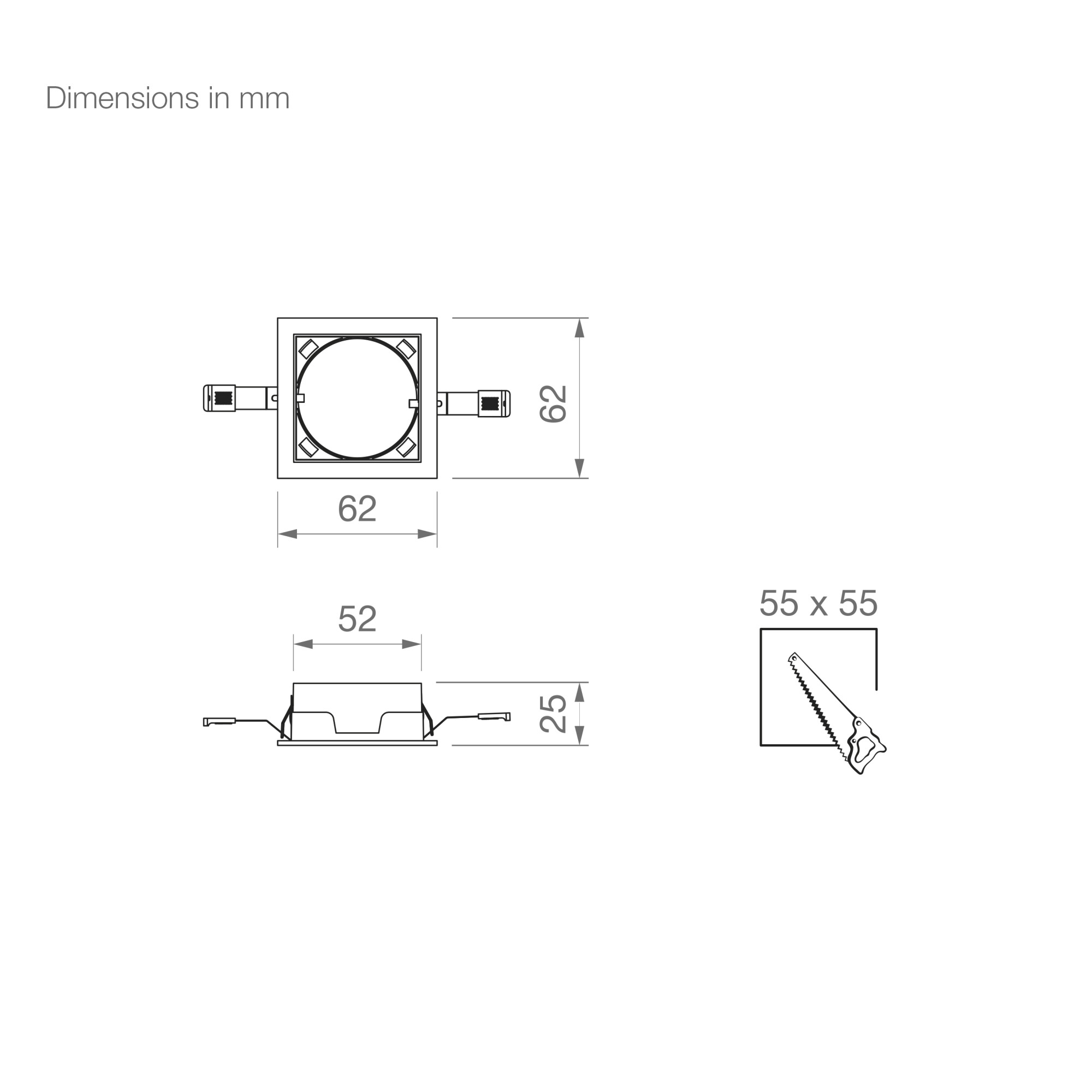 | 48.014 | SQUARE RECESSED TRIMLESS FRAME 75X75X25MM MATT WHITE FOR FOCALIS AXIS 8W | See price |