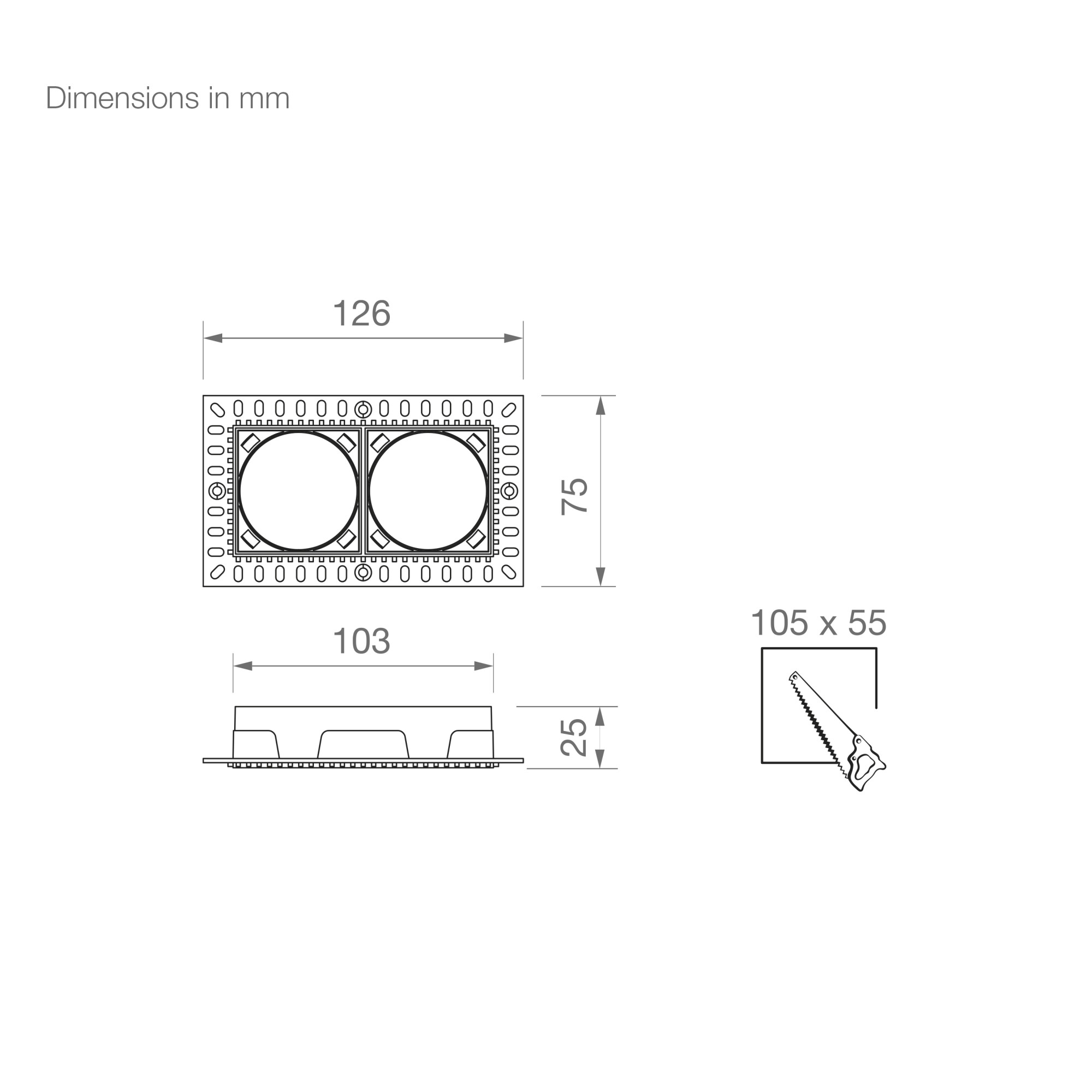 | 48.016 | SQUARE RECESSED DOUBLE TRIMLESS FRAME 126X75X25MM MATT WHITE FOR FOCALIS AXIS 8W | See price |