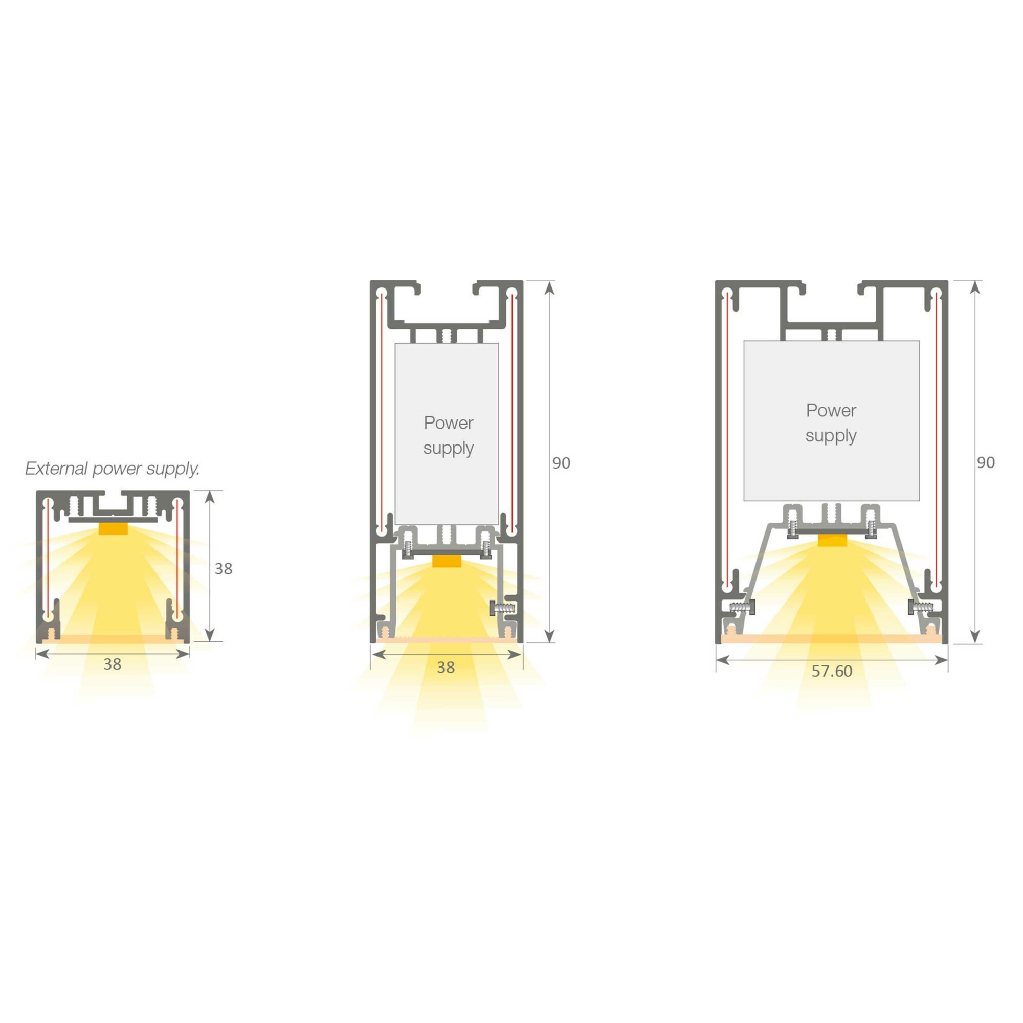 Este perfil se puede usar con nuestro difusor microprisma transparente que mejora el deslumbramiento (“UGR <19”).
