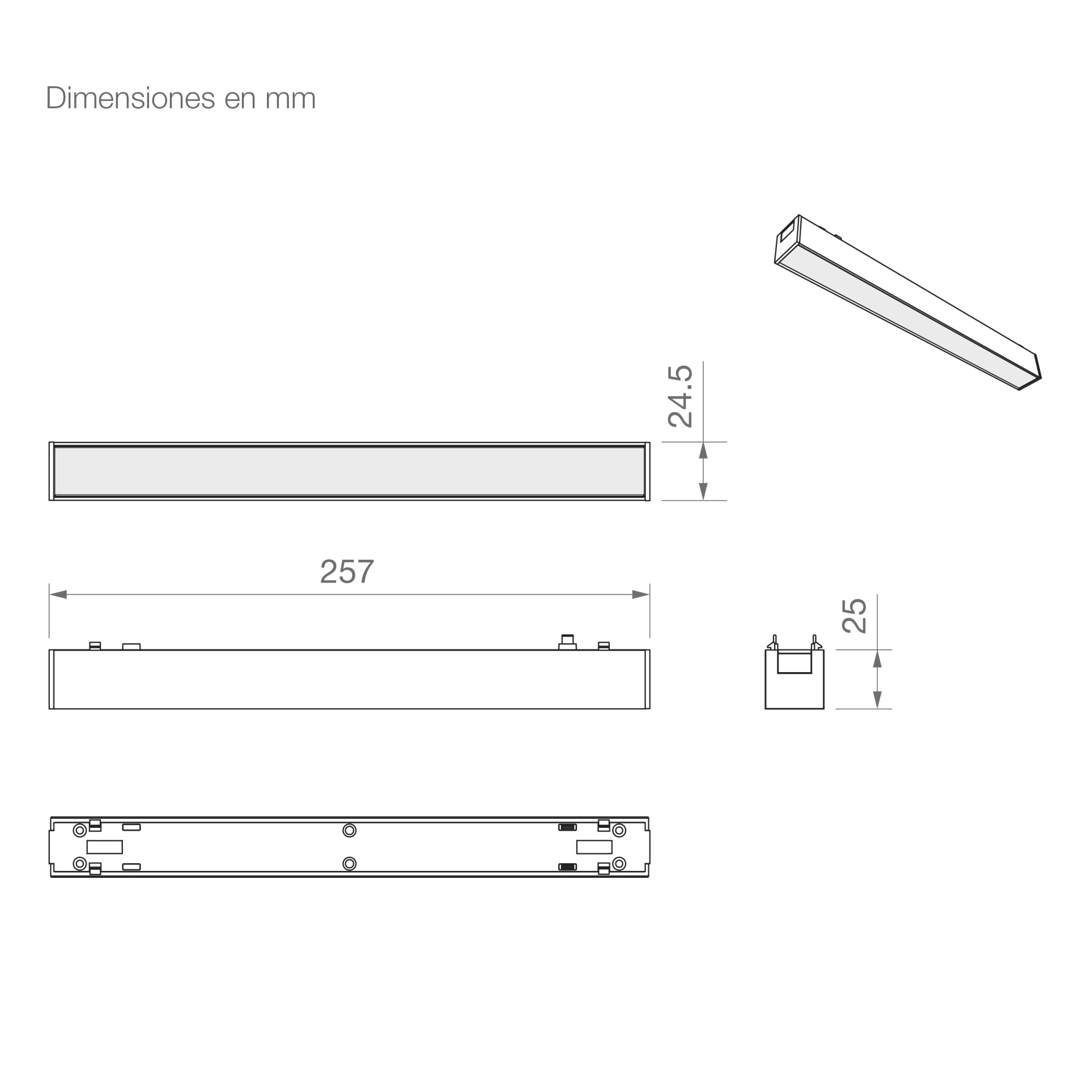 TRAZZO LINE 26 - 9W - 4000K - CRI90 - 90º - CON DIFUSOR - 257X25X25MM - 48V - ON/OFF - NEGRO MATE