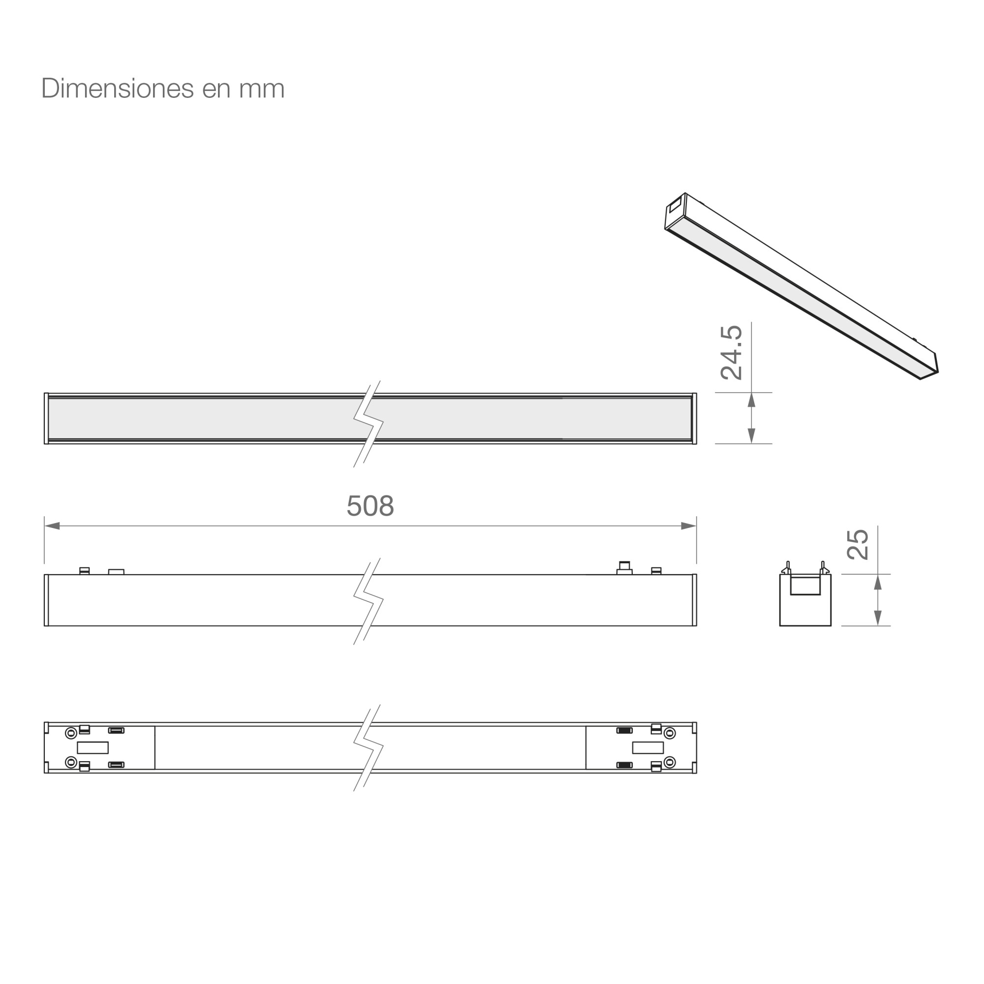 TRAZZO LINE 50 - 18W - 4000K - CRI90 - 90º - CON DIFUSOR - 508X25X25MM - 48V - ON/OFF - NEGRO MATE