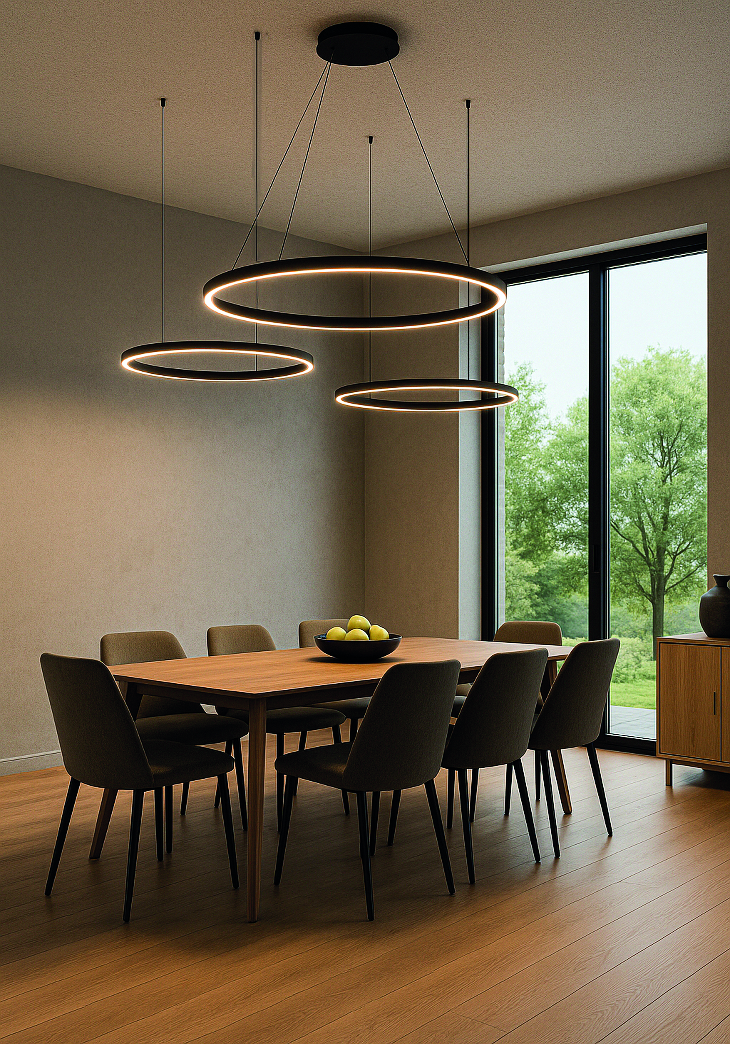 Les luminaires circulaires de la collection offrent différentes options d'éclairage (vers l'intérieur, l'extérieur ou vers le bas), s'adaptant ainsi aux besoins spécifiques de chaque projet. Grâce à cette versabilité, Waves est idéal pour les bureaux, les hôtels, les espaces commerciaux ou tout autre environnement qui souhaite se démarquer par un design personnalisé et avant-gardiste.