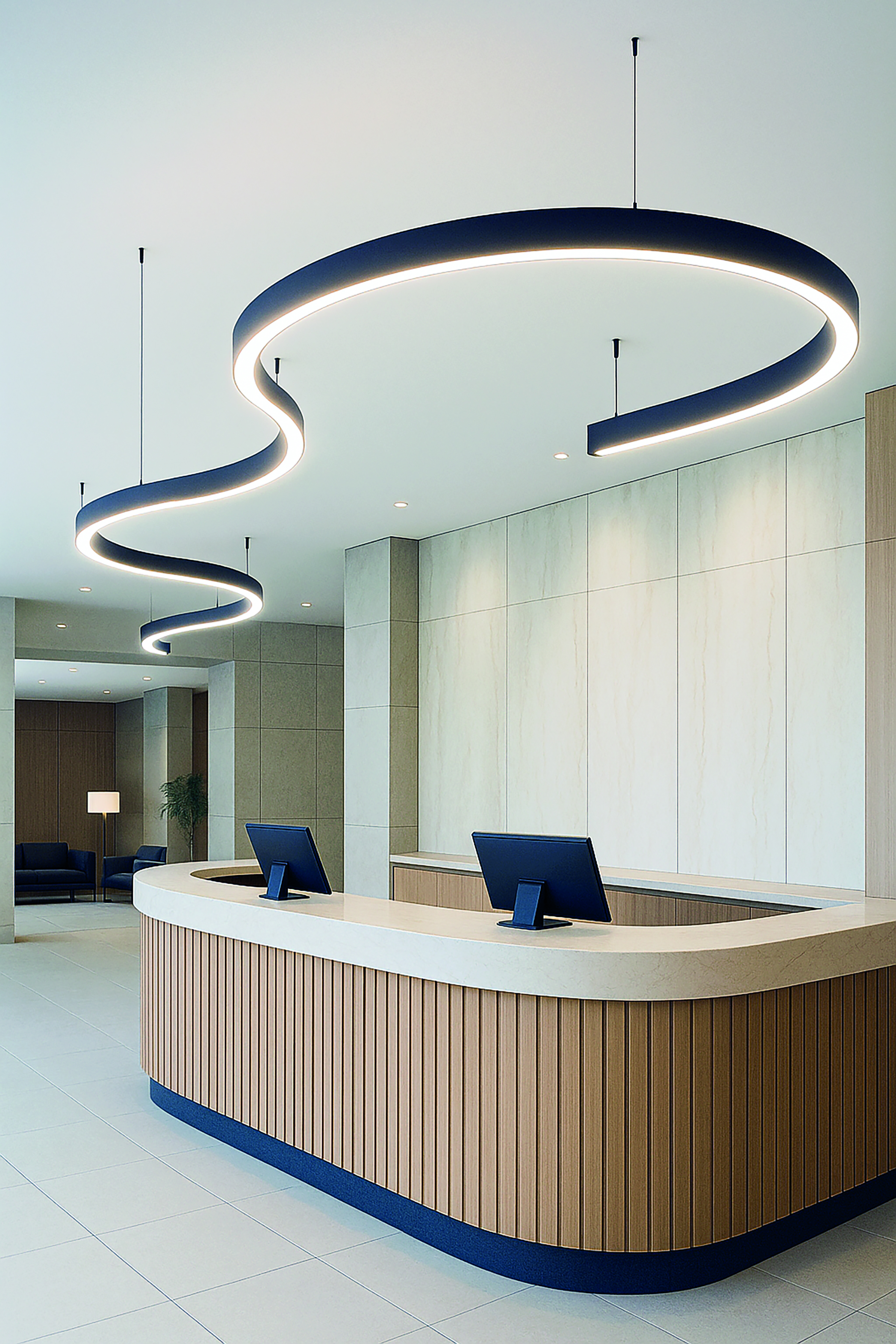 Luz Negra présente Waves, notre solution la plus innovante en matière de luminaires linéaires, conçue pour combiner des sections courbes, droites et circulaires, ouvrant ainsi un monde de possibilités créatives pour des compositions uniques et dynamiques.