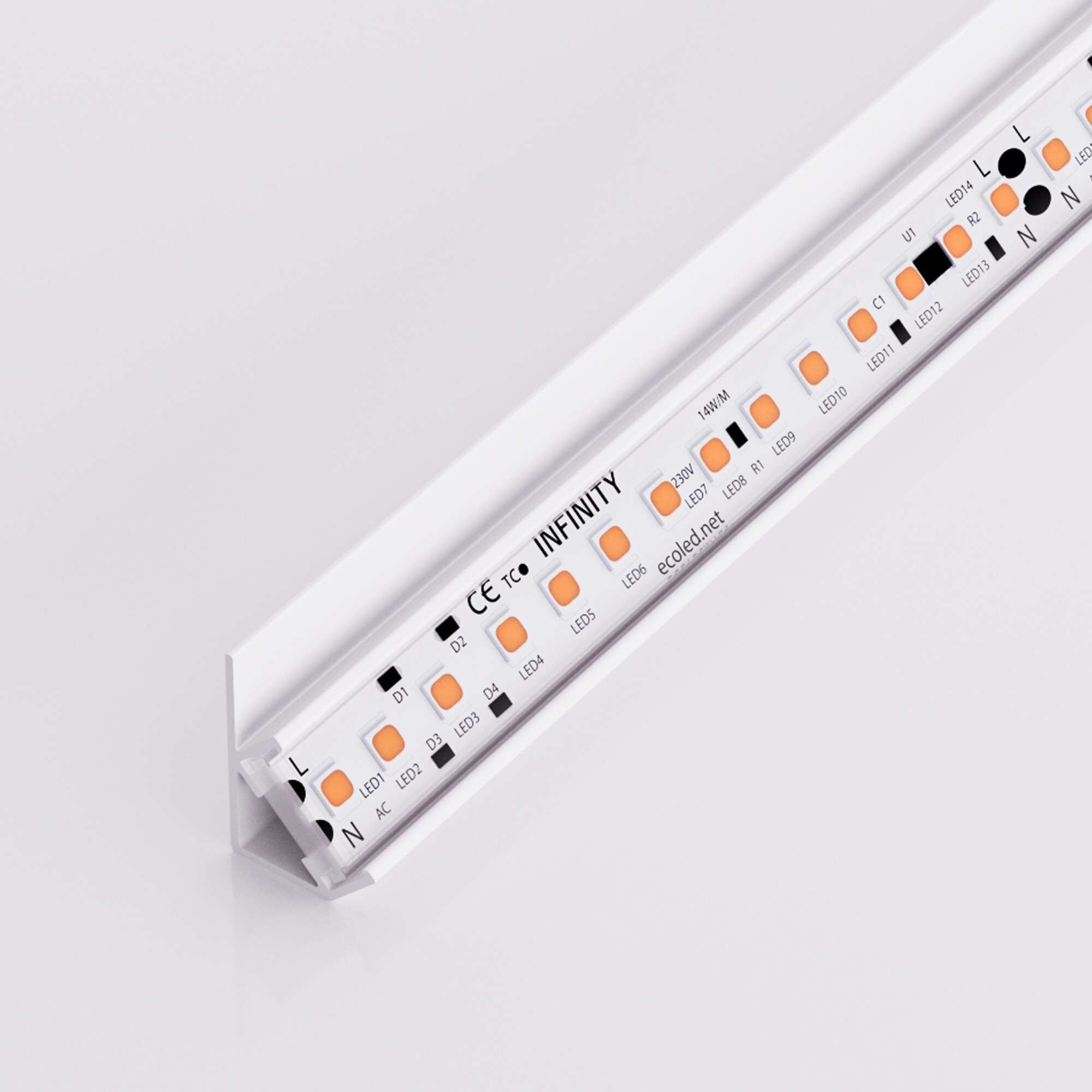 20.304 45º WHITE ABS PLASTIC CLIP PROFILE FOR LED STRIP INFINITY 9 / INFINITY 14 (L=1M) See price