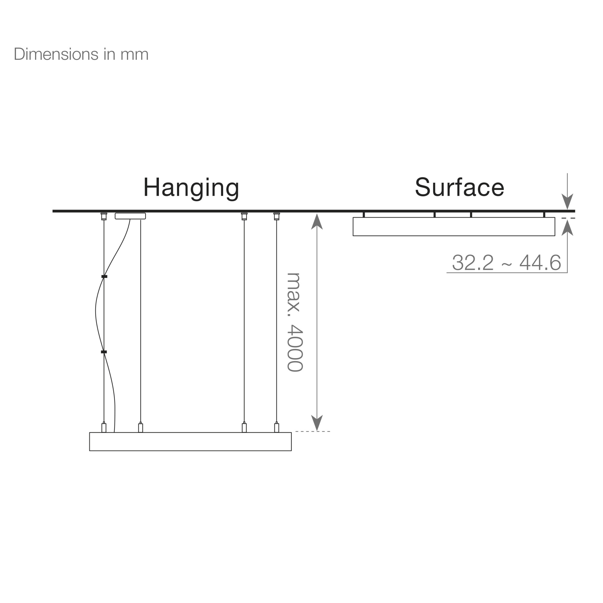 It can be used on surfaces or for hanging applications (using hanging kits). A small rosette is included.