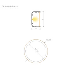 LUMINAIRE, SKYLED VENUS 120 MODEL, WITH BLACK PROFILE AND ECOLED STRIP, MODEL NERJA CCT 3100K/6500K - 74W - 220V / 230V - IP20 (SIZE Ø1200MM). INCLUDES POWER SUPPLY (PLACED INSIDE THE ROSETTE), HANGING KIT AND BLACK ROSETTE (46.064)