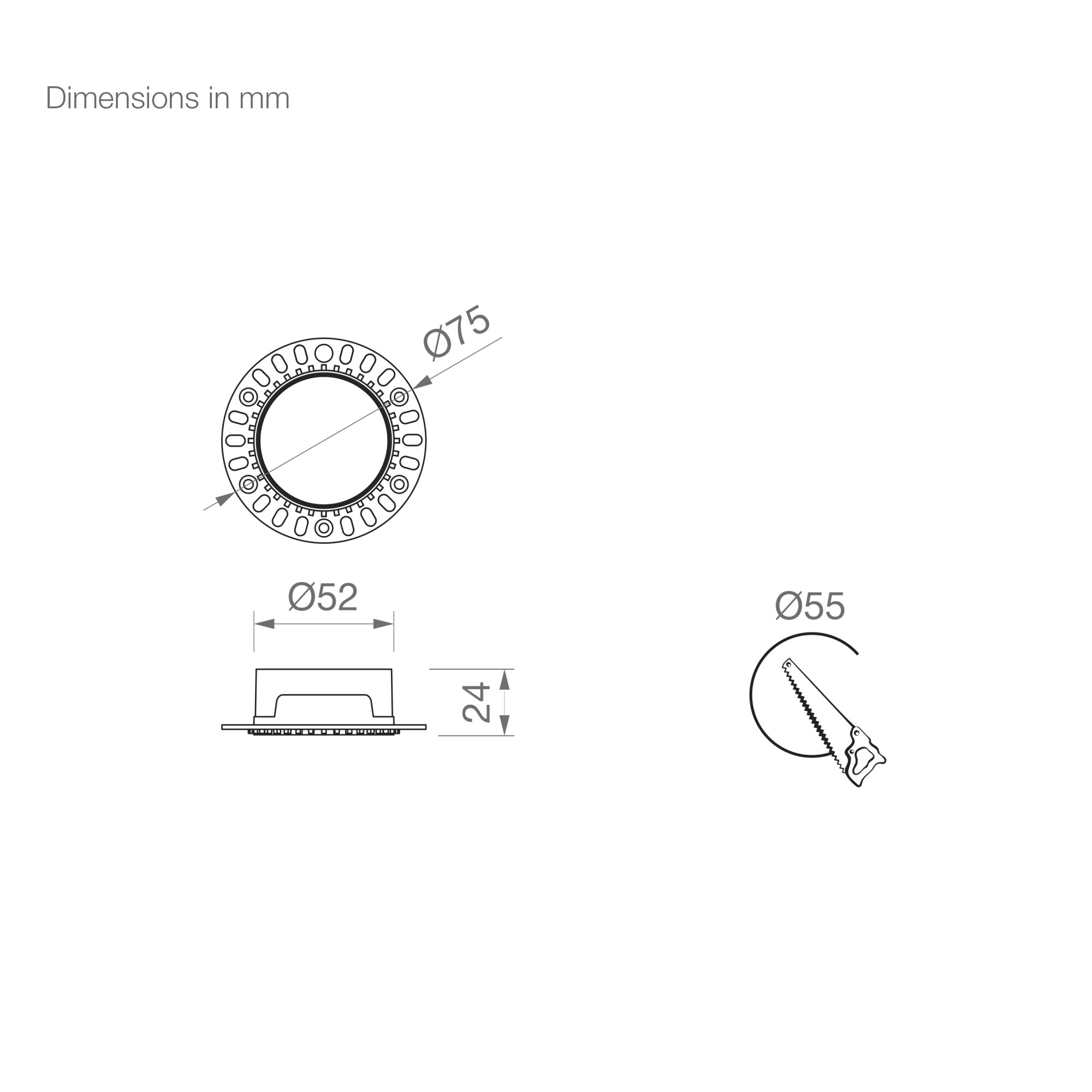 | 48.012 | ROUND RECESSED TRIMLESS FRAME Ø75X24MM MATT WHITE FOR FOCALIS AXIS 8W | See price |