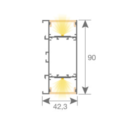 led profile serie PROFESIONAL fabricado en aluminio de alta pureza disponible en anodizado plata. Perfil ideal para iluminación UP&DOWN (superior e inferior) de paredes y pasillos. Apto para tiras de led con un ancho máximo de 12mm y una potencia no superior a 20W/m. Recomendamos el uso de tiras ecoled Canovelles-Barcelona-Gomera-COB para conseguir una iluminación más homogénea y difuminada.