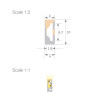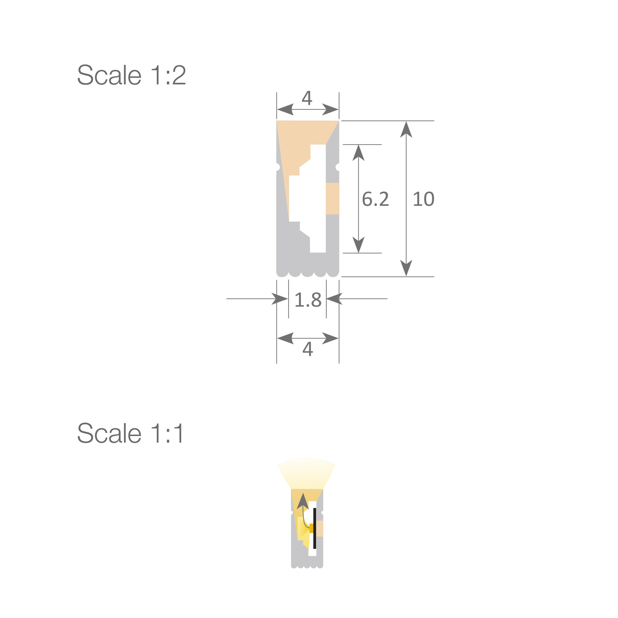 È dotato di una cavità interna per alloggiare la striscia LED, che deve essere IP20 con un PCB da 6 mm. Si sconsiglia una potenza massima di 12 W/m.