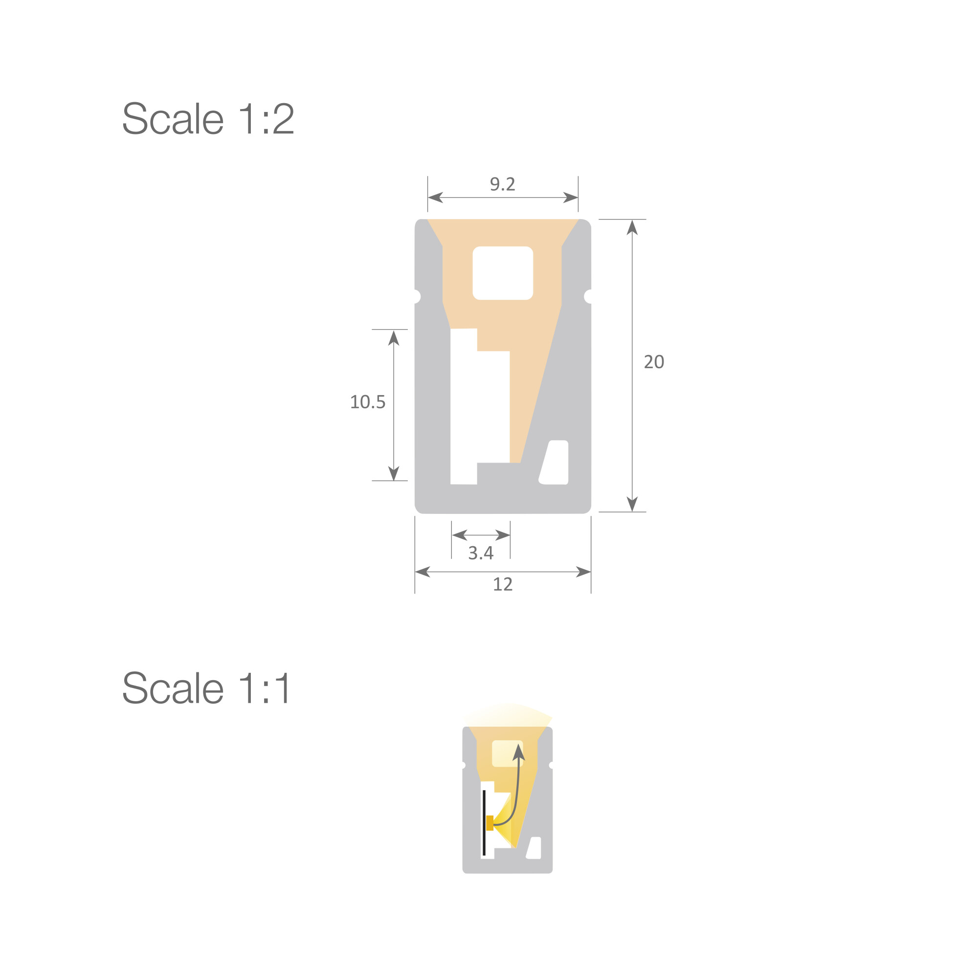 Profilo in silicone di alta qualità con frontale opalino. Ideale per illuminare nicchie, cornici, creare un'illuminazione perimetrale decorativa e visualizzare lettere e testi pubblicitari di grande formato, ecc. È dotato di una cavità interna per alloggiare la striscia LED, che deve essere IP20 con un PCB da 10 mm e una potenza massima di 14 W/m. Si consiglia l'utilizzo di strisce Ecoled Castellón. Grazie al grado di protezione IP67 e alla protezione UV, è adatto per ambienti esterni e umidi (è fondamentale sigillare perfettamente il connettore e il tappo terminale con il silicone specificato). Disponibile in rotoli da 100 metri o tagliato su misura (fatturazione minima di 1 metro per lunghezza).