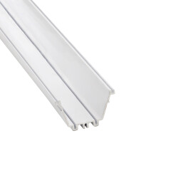 È dotato di un diffusore microprismatico trasparente e satinato che migliora l’abbagliamento e il livello UGR. È disponibile anche un diffusore bianco satinato con sistema “easy-ON”. Profilo e diffusore sono disponibili in barre da 6 metri che consentono installazioni di grande lunghezza senza necessità di giunzioni.