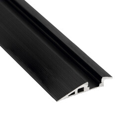 Profilo LED serie PROFESSIONAL, anodizzato nero, progettato per l'illuminazione perimetrale di tappeti, parquet e superfici simili. Viene fornito in lunghezze di 3 metri e può ospitare strisce LED con uno spessore del PCB fino a 10 mm. Si consiglia l'utilizzo della striscia Canovelles ecoled per una corretta diffusione della luce LED e un'ottimale resistenza all'acqua.