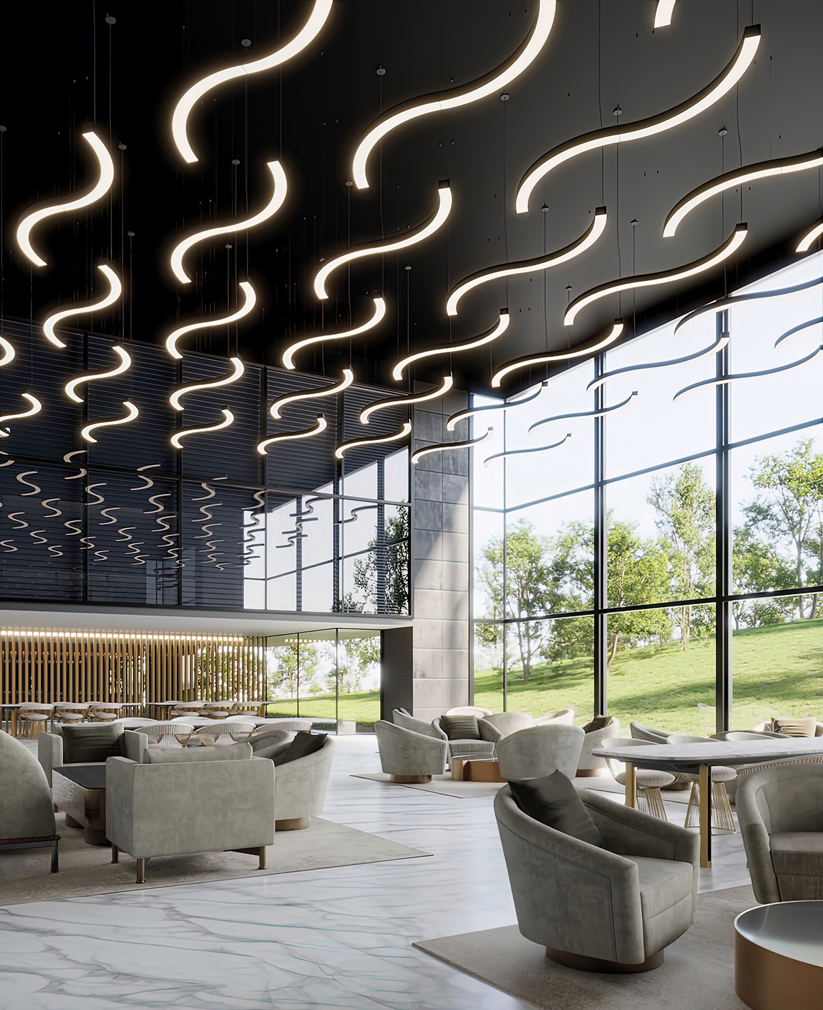 È realizzata in alluminio verniciato bianco texturizzato o verniciato nero texturizzato e illuminata con una striscia LED a 3000K - 4000K - 6000K. Può essere utilizzata su superfici o per applicazioni sospese (utilizzando i kit sospesi inclusi).