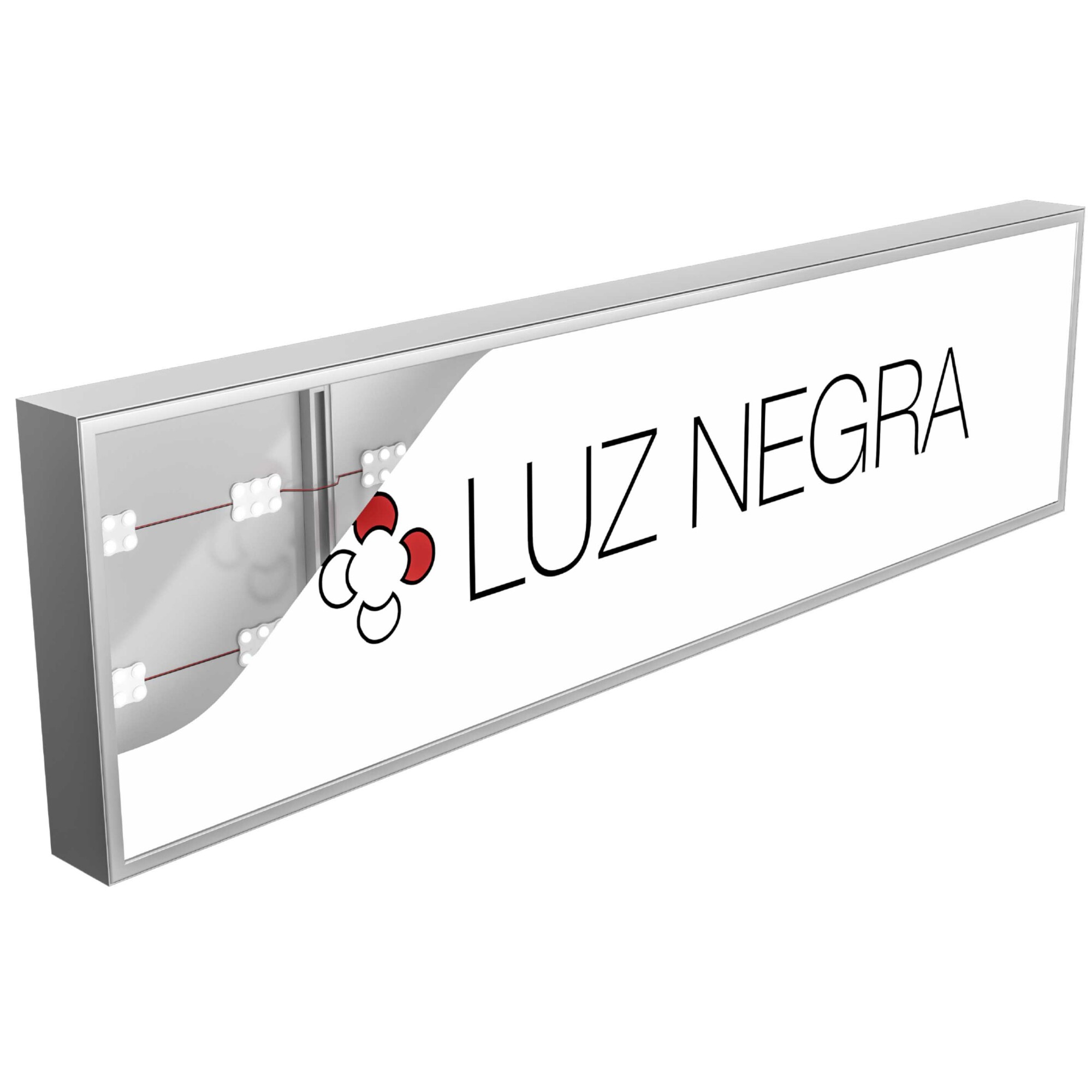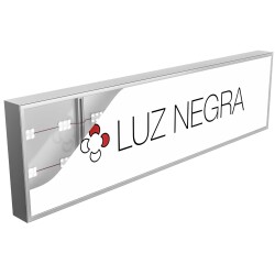 Lampada pubblicitaria da parete, soffitto o sospensione (kit di montaggio non incluso) realizzata con profili in alluminio laccato bianco o nero, profondità 12 cm.