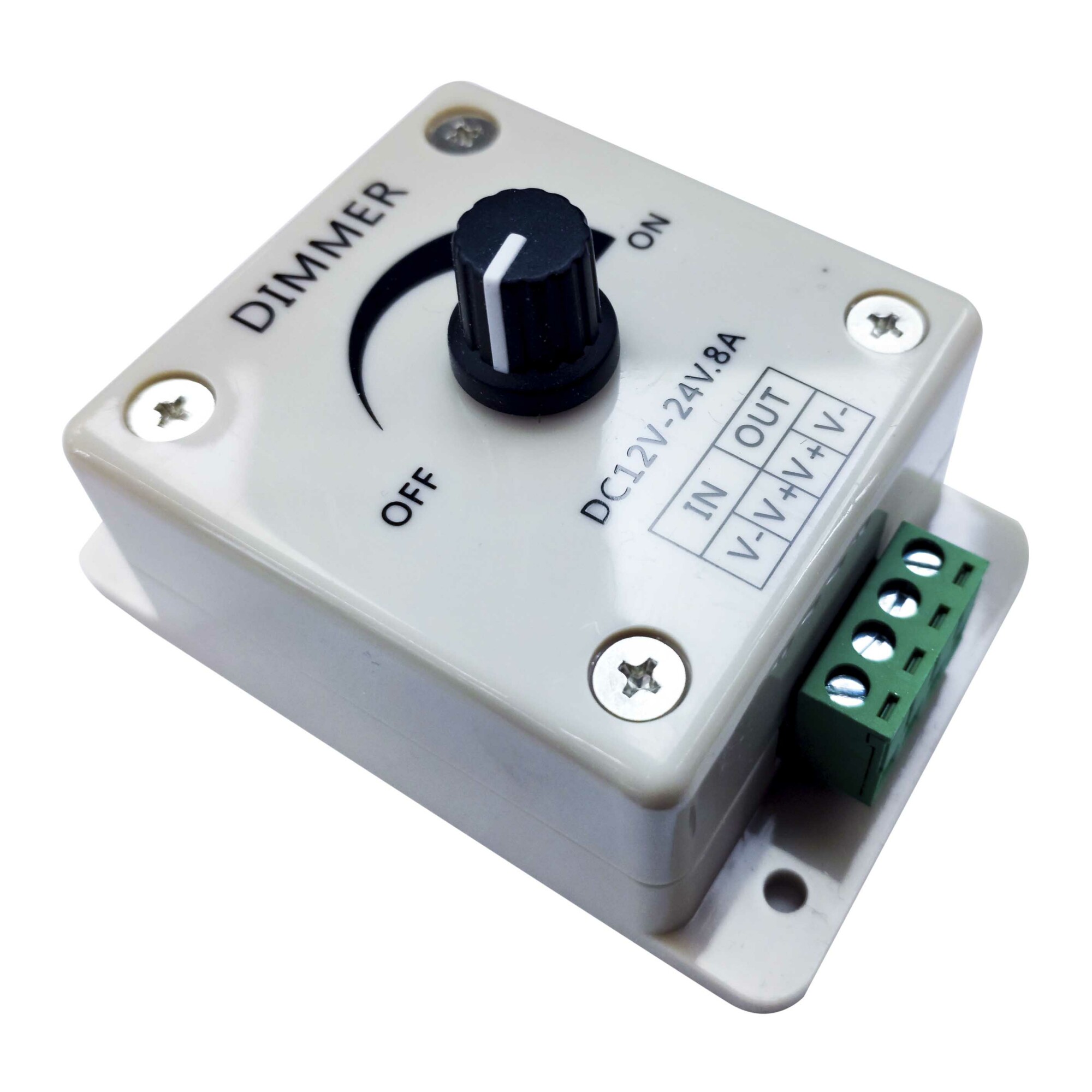 Dimmer non stagno, monocolore per superfici. Regolazione dallo 0% al 100%. Questo prodotto non è consigliato per installazioni in aree con elevati livelli di umidità (IP20).
