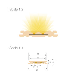 Profilo in silicone opalino estruso di alta qualità con striscia LED da 230V integrata. Consente l'illuminazione continua di nicchie, cornici, ecc., fino a 25 metri senza alcuna perdita di luminosità. È dotato di due fessure laterali per il fissaggio tramite viti o chiodi alla superficie desiderata. Non necessita di alluminio per la dissipazione del calore e può funzionare ininterrottamente per 24 ore. Può essere tagliato ogni 5 cm. Consuma 34W/m e offre 3750 lm/W. È dimmerabile con un dimmer a triac. Grazie al kit di connessione a vite, non è necessaria la saldatura (i pad di saldatura sono sul retro della striscia) e il grado di protezione IP67 e la protezione UV lo rendono adatto ad ambienti esterni e umidi (è essenziale sigillare perfettamente il connettore e il tappo terminale con il silicone consigliato). È disponibile in rotoli da 100 metri o tagliato su misura (ordine minimo 1 m).