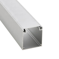 profilo LED lineare composto da base e copertura in alluminio il cui obiettivo è quello di nascondere al suo interno alimentatori, controller, morsetti di connessione, ecc. Principalmente si utilizza per il fissaggio a soffitto nascondendo l’alimentatore, in quelle lampade di piccole dimensioni che non permettono di includerlo al loro interno.