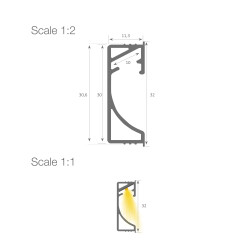 Led profile serie BASIC senza diffusore realizzato in plastica bianca. Profilo ideale per l’illuminazione indiretta di mobili ed espositori. Consente l’integrazione nel legno illuminando in modo indiretto verso l’alto o verso il basso. Adatto per strisce LED con una larghezza massima di 10 mm e una potenza non superiore a 16W/m. Si consiglia l’uso di strisce ecoled Formentera per ottenere un’illuminazione omogenea.