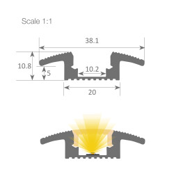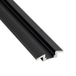 Profilo LED serie PROFESSIONAL, anodizzato nero, progettato per l'illuminazione di tappeti, parquet e superfici simili. Viene fornito in lunghezze di 3 metri e può ospitare strisce LED con uno spessore del PCB fino a 10 mm. Si consiglia l'utilizzo della striscia Canovelles ecoled per una corretta diffusione della luce LED e un'ottimale resistenza all'acqua.