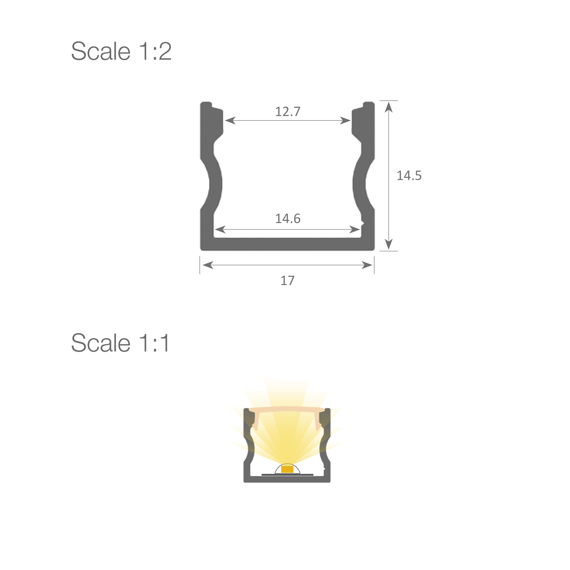 Led profile serie BASIC da superficie, realizzato in alluminio ad alta purezza disponibile in anodizzato argento, verniciato bianco, verniciato nero e alluminio grezzo (su richiesta disponibile in altre finiture verniciate/anodizzate). Ideale per applicazioni a superficie su pareti, mobili, scaffalature e simili. Adatto per strisce LED con una larghezza massima di 14 mm e una potenza non superiore a 30W/m. Si consiglia l’uso del diffusore satinato e di strisce ecoled Canovelles-Barcelona-Gomera-COB per ottenere un’illuminazione più omogenea e diffusa.