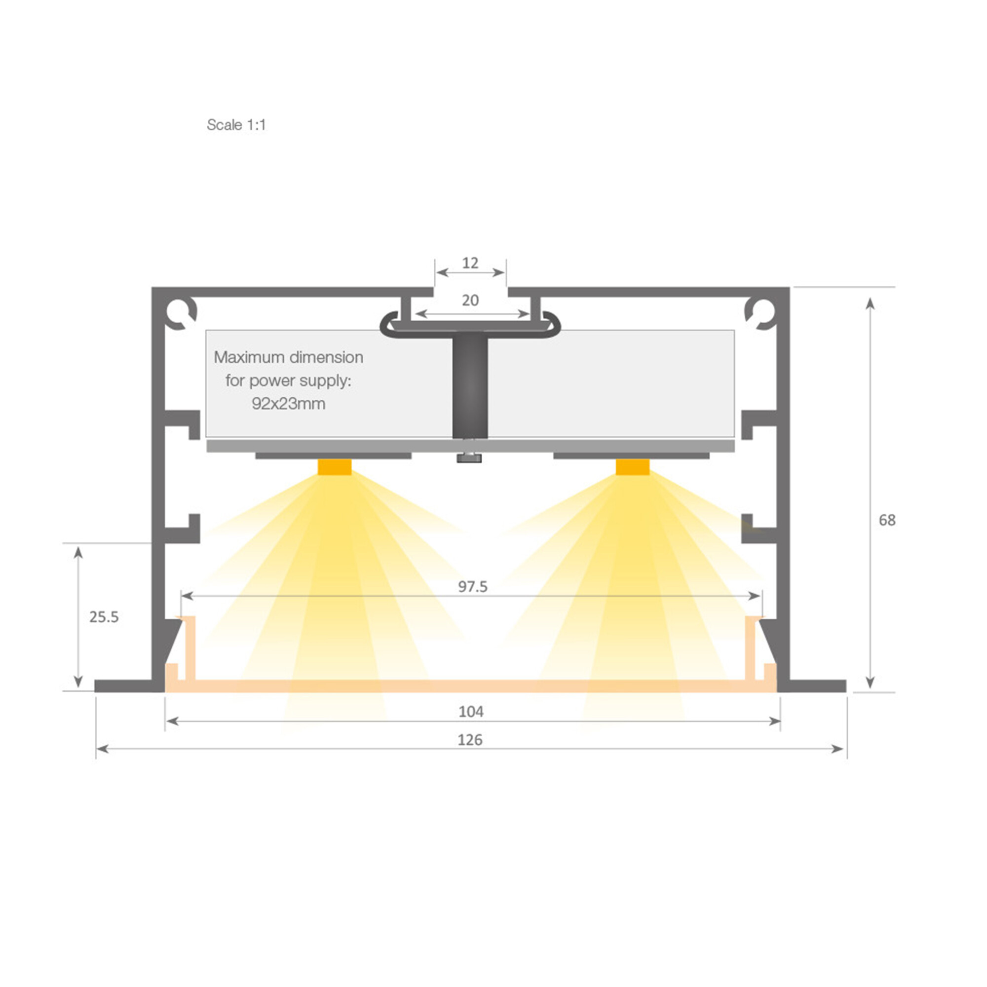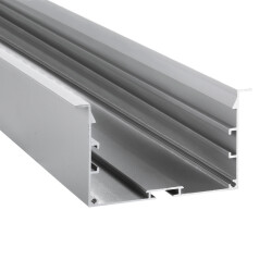 Profilo LED da incasso serie professionale, realizzato in alluminio ad alta purezza, laccato bianco e grigio testurizzato. Consente l'alloggiamento interno dei driver. Dotato di diffusore bianco satinato. L'ampio profilo permette l'installazione di due strisce LED rigide, garantendo un'elevata luminosità (particolarmente indicato per centri commerciali, supermercati, ecc.). Profilo e diffusore sono disponibili in lunghezze di 3,4 metri.