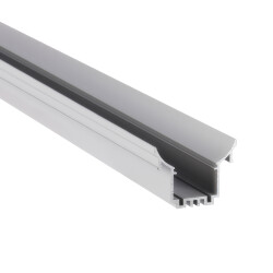 Il profilo LED da incasso della serie PROFESSIONAL è realizzato in alluminio ad alta purezza, laccato con finitura testurizzata bianca, nera e grigia. I driver possono essere alloggiati internamente. Il vassoio interno consente di avvitare la striscia LED rigida da un lato e l'alimentatore dall'altro. Questo vassoio è anche rimovibile frontalmente, facilitando la manutenzione. Per motivi di sicurezza, si consiglia di collegare un cavo intrecciato dalla base del profilo al vassoio del dissipatore di calore. Sia il profilo che il diffusore sono disponibili in lunghezze di 3,4 metri.