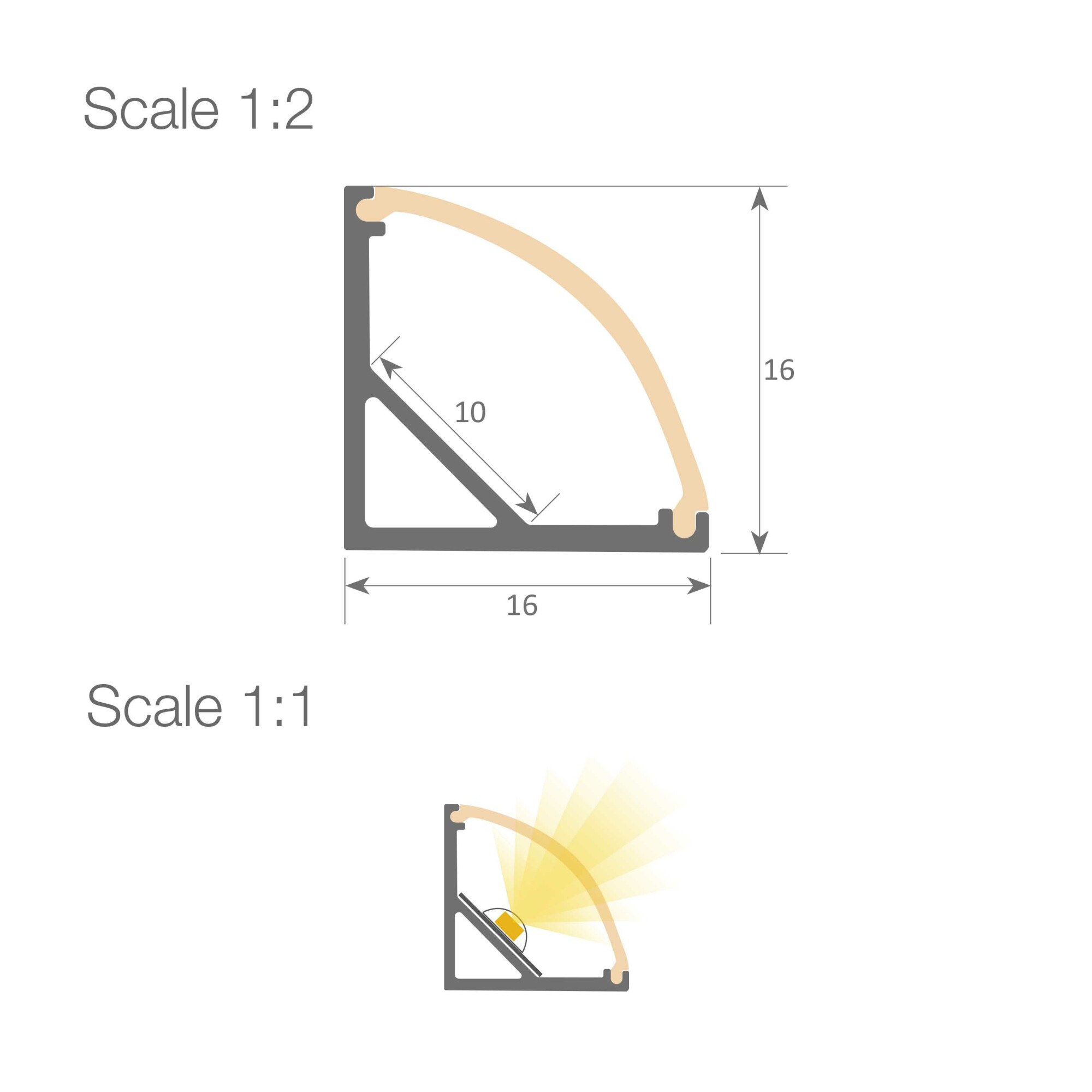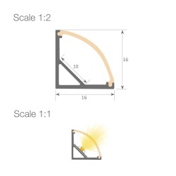 Profilo LED angolare serie BASIC, realizzato in alluminio ad alta purezza, disponibile con finitura anodizzata argento. Ideale per applicazioni a superficie su pareti, mobili, mensole e superfici simili dove è necessario un profilo che emetta luce ad angolo, favorendo la diffusione della luce e la dissipazione del calore. Adatto per strisce LED con larghezza massima di 10 mm e consumo energetico non superiore a 20 W/m. Si consiglia l'utilizzo del diffusore opalino e delle strisce Elite ecolod per un'illuminazione più omogenea e diffusa.