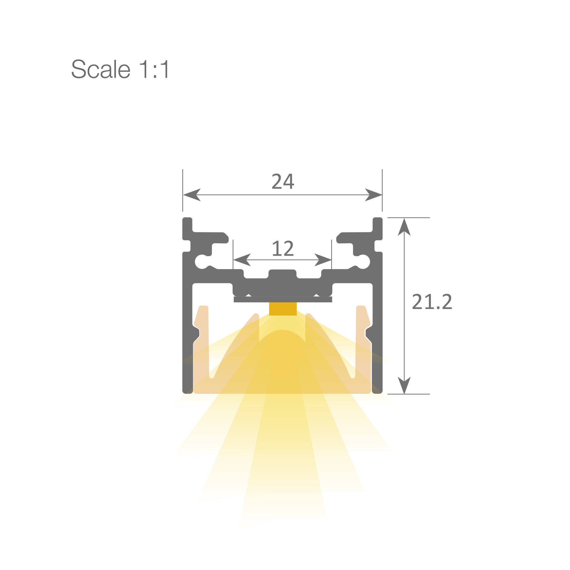 Profilo LED + ottica trasparente a 30° che consente di proiettare la luce su lunghe distanze se si utilizza un'illuminazione a striscia rigida ad alta luminosità.